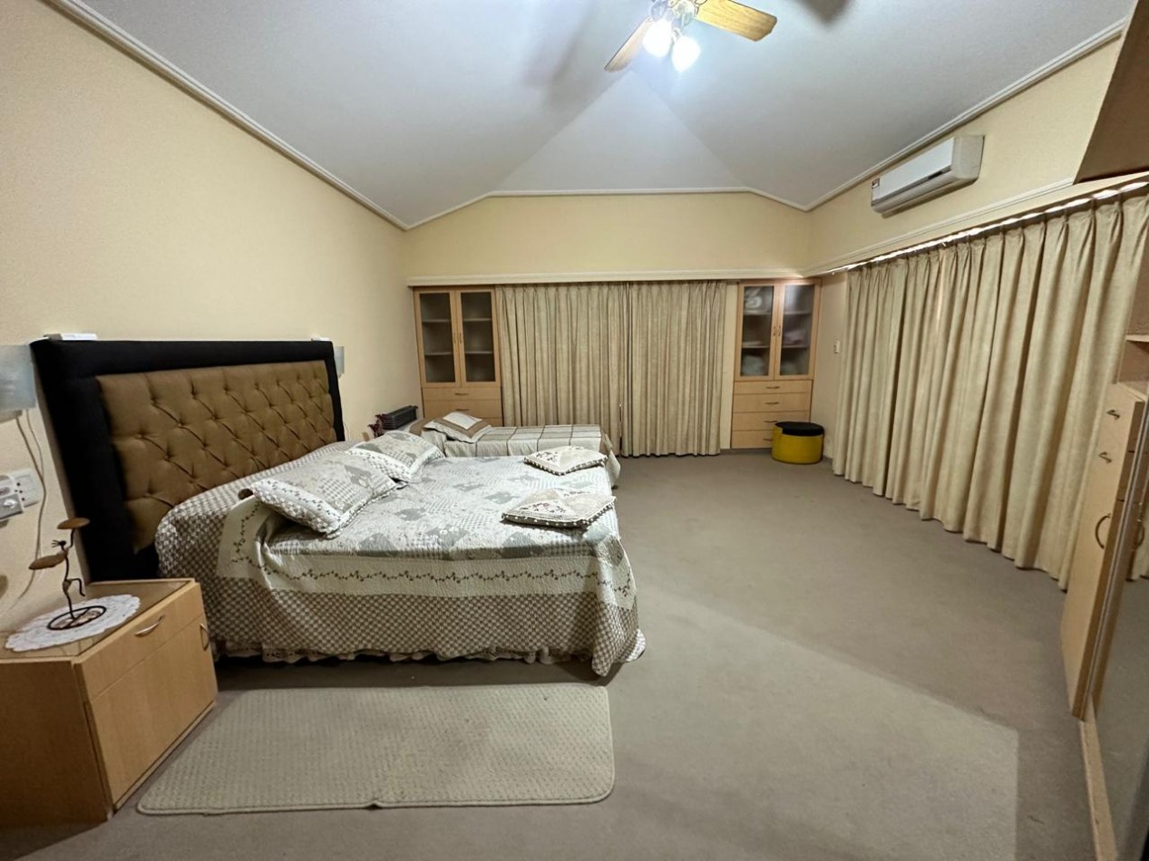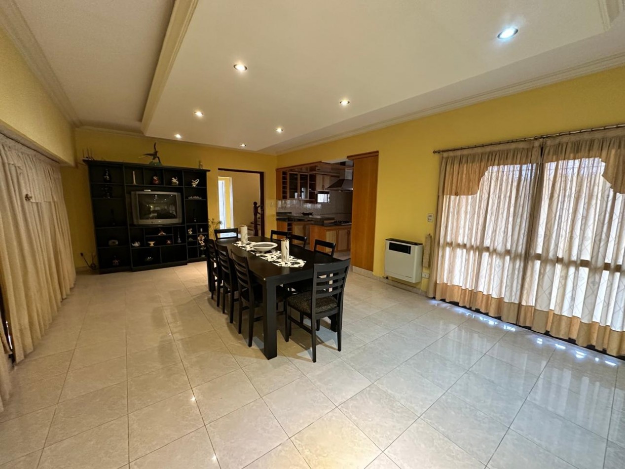 Amplia casa con excelentes vistas. Conformada por amplio parque, cochera doble, 4 dormitorios con sus baños, living comedor, cocina sectorizada, quincho equipado, lavadero y pileta.