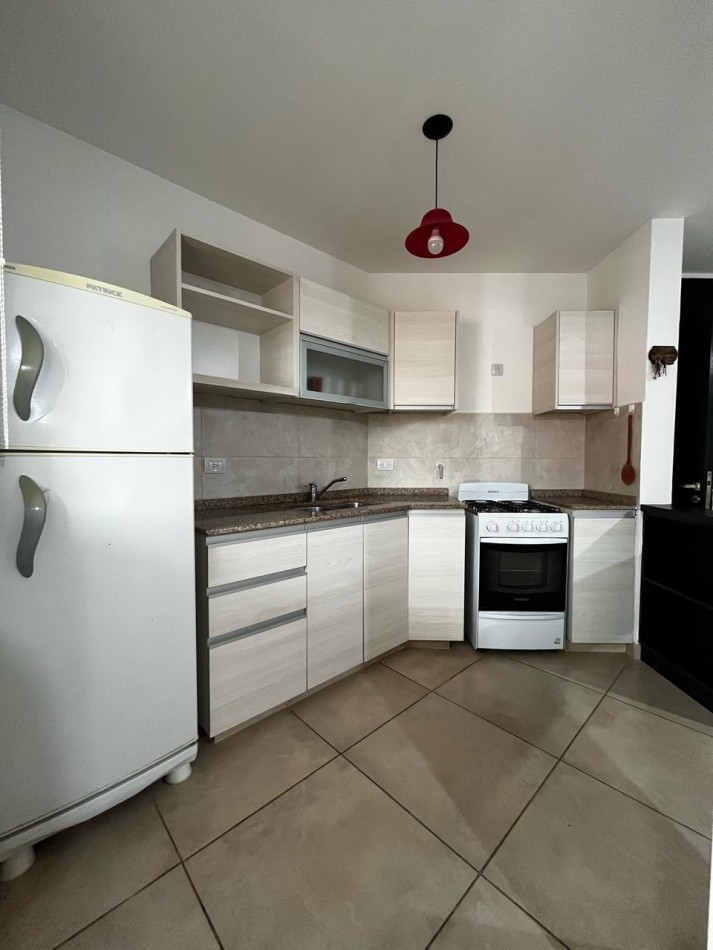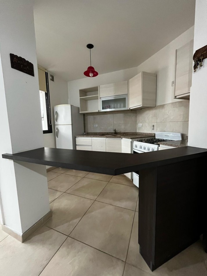 Conformado por amplio living comedor con cocina semi integrada, con Amoblamiento completo de alacenas y bajo mesada, con barra y ventilación natural.