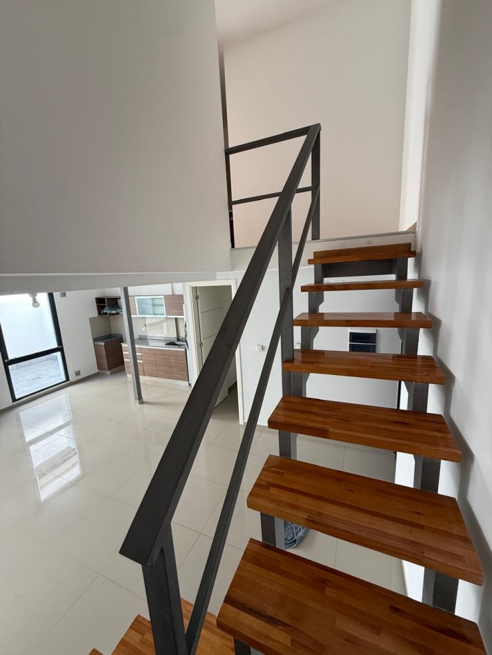 Departamento tipo duplex, conformado en planta baja por living comedor con cocina integrada, baño completo, espacio para lavarropas y patio. Subiendo por escaleras, se encuentra la segunda planta conformada por 2 dormitorios y un baño completo. Los dormitorios cuentan con placares con interiores completos, el baño de la segunda planta tiene mampara de vidrio, la cocina cuenta con mueble bajo mesada y alacenas completo.